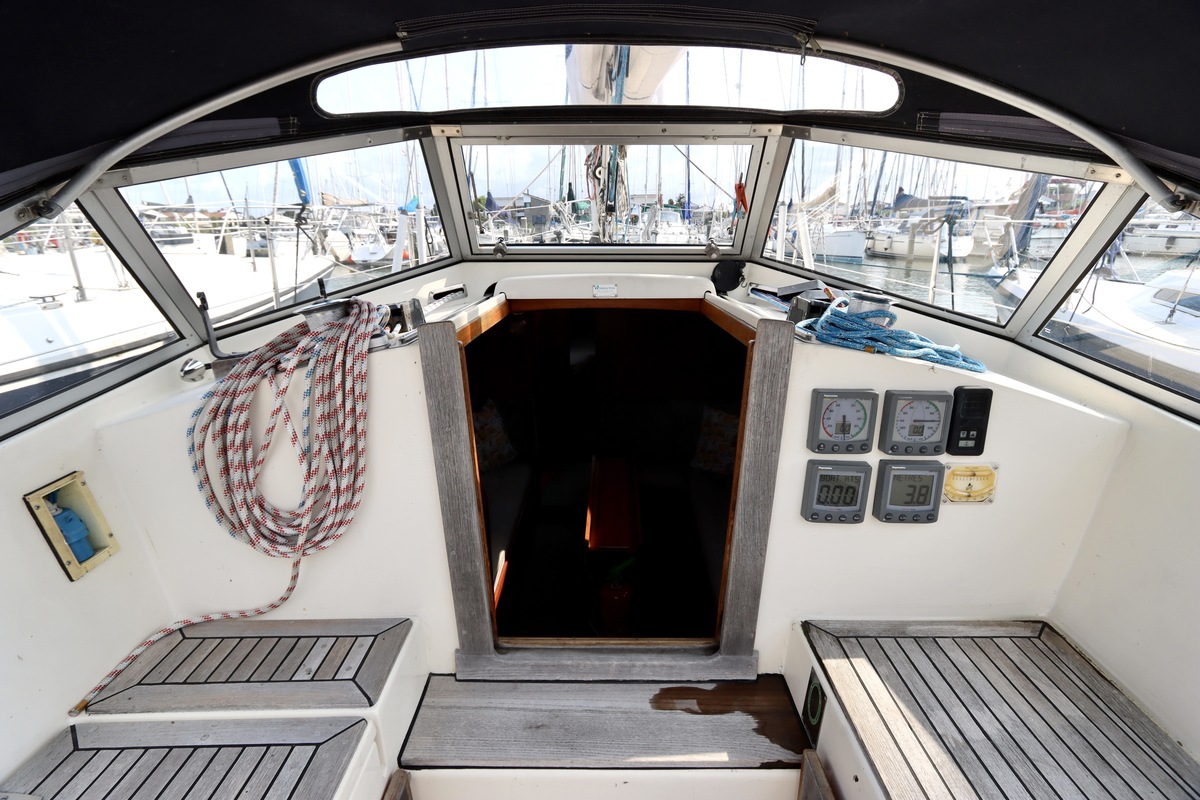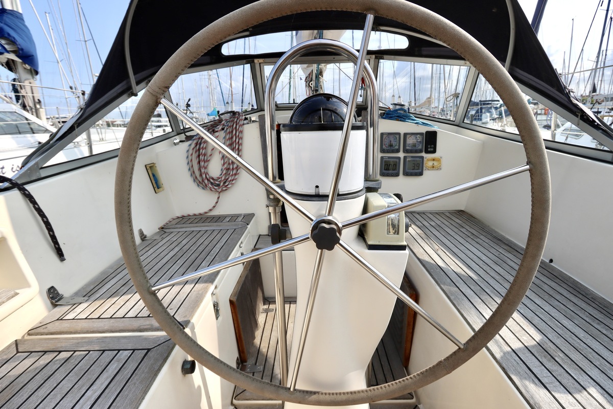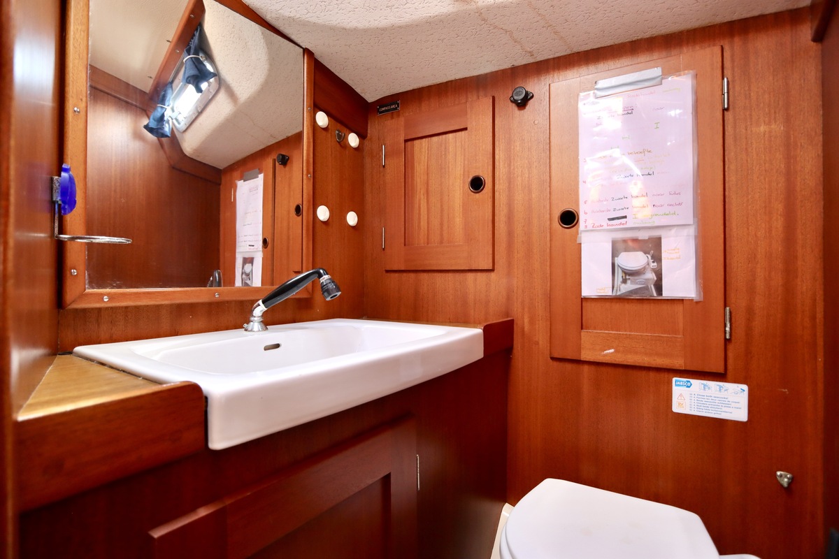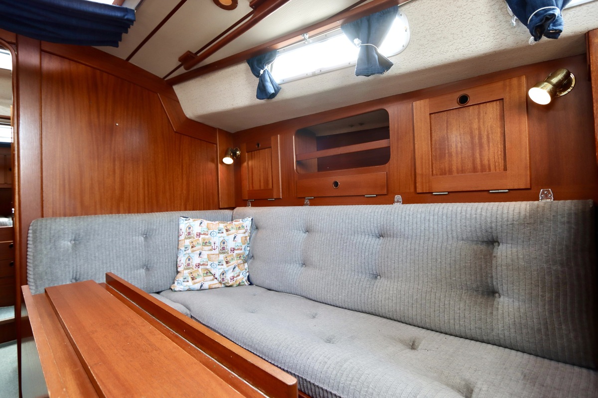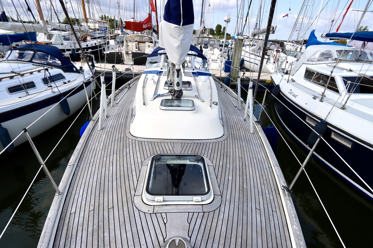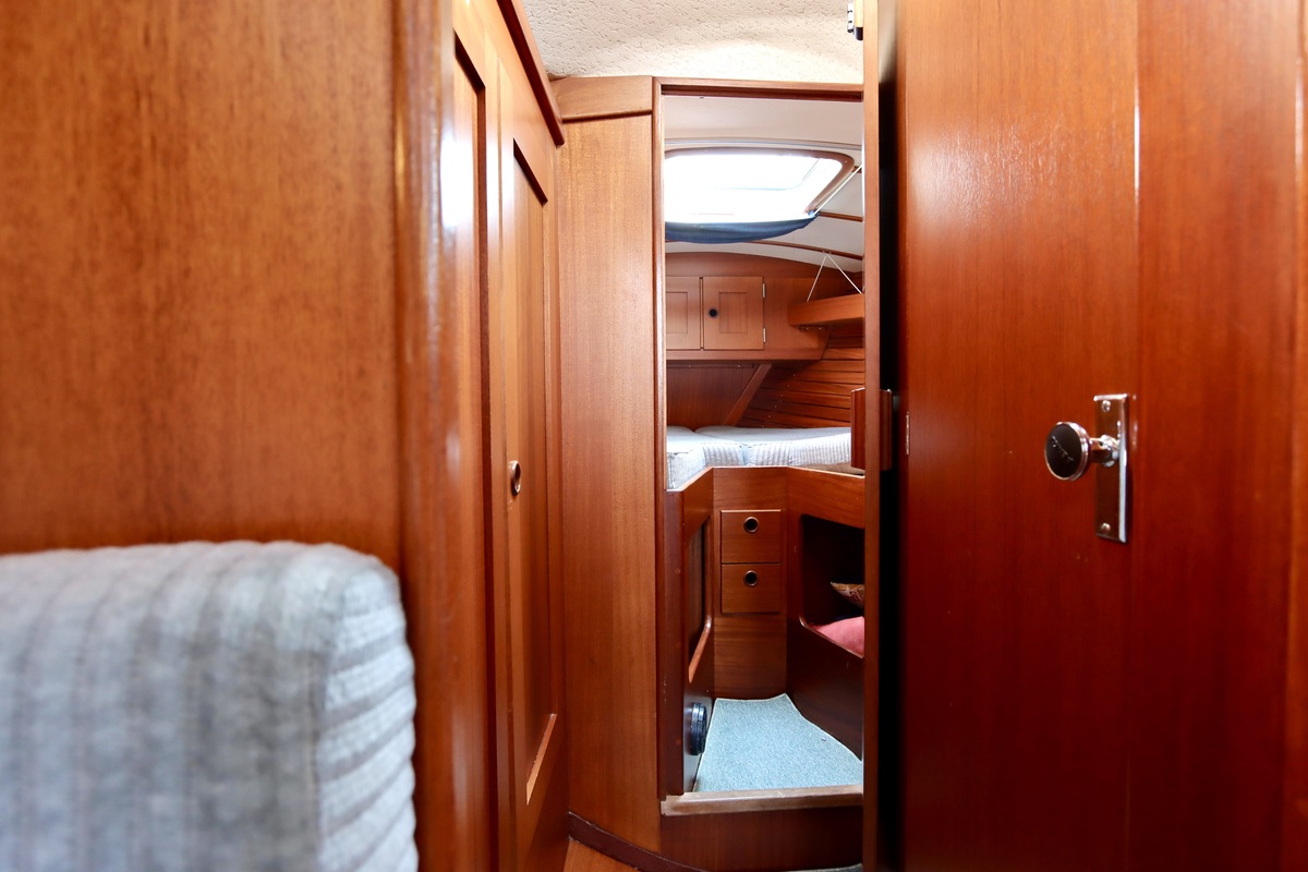In 1986, the Hallberg-Rassy 312 Mk II was introduced. The most notable change was the larger, higher-mounted windows, which created more light and space in the saloon. The standing height was also increased from 1,83 to 1,85 meters. The galley gained more workspace, and the interior was modified to include a separate head with a shower tray and a standard quarterberth. The boat is well-maintained and ready for adventure.