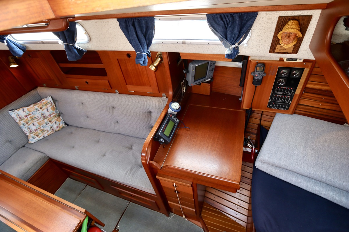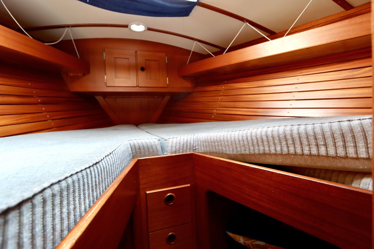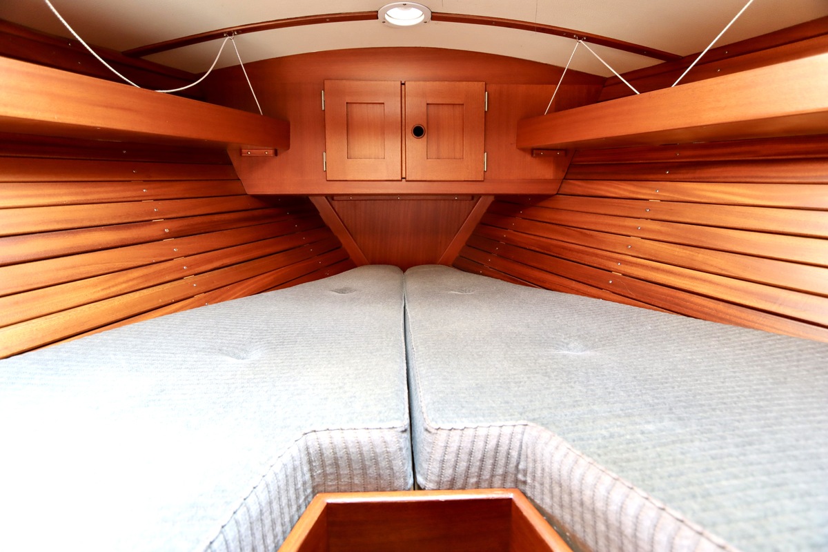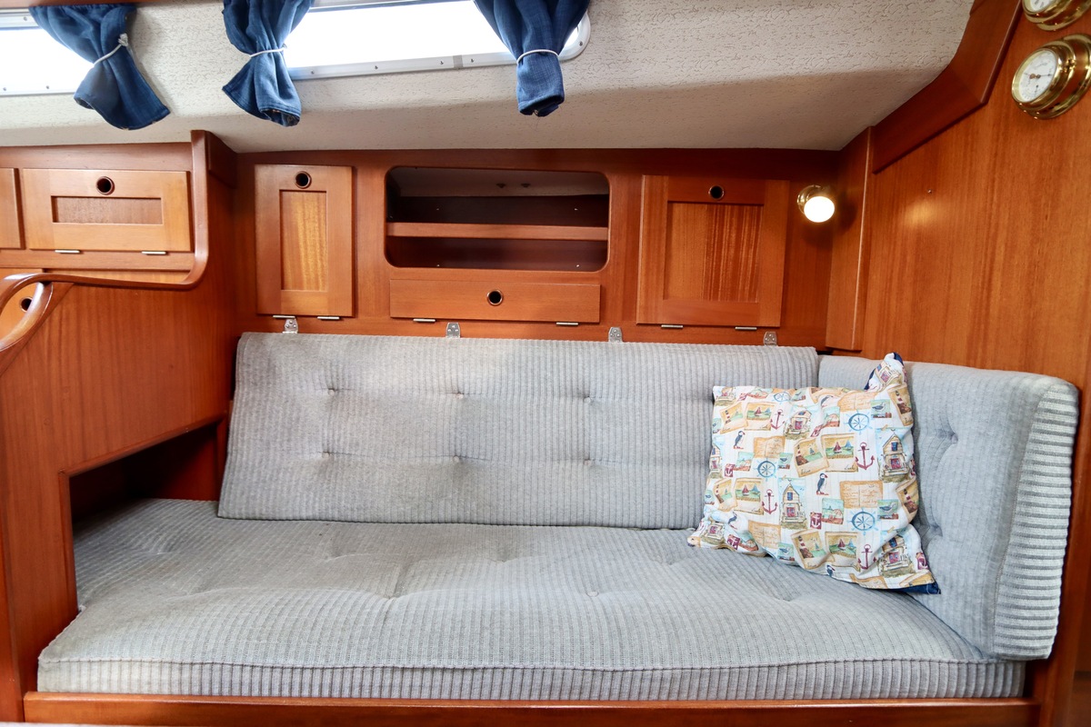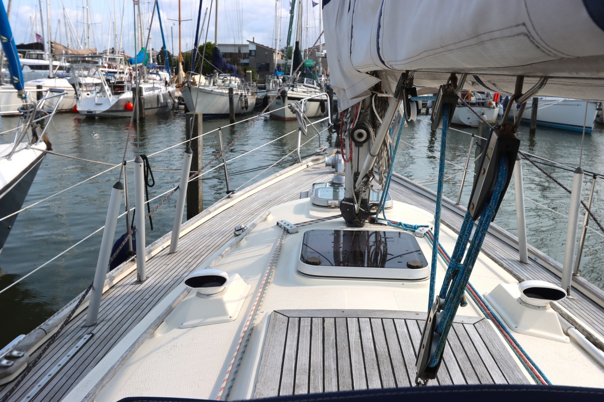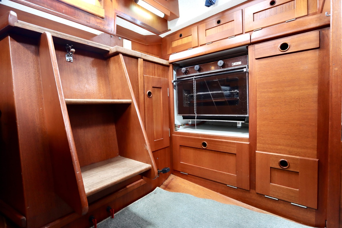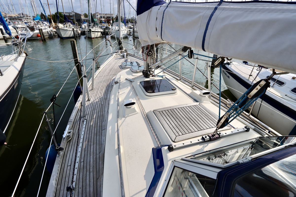 In 1986, the Hallberg-Rassy 312 Mk II was introduced. The most notable change was the larger, higher-mounted windows, which created more light and space in the saloon. The standing height was also increased from 1,83 to 1,85 meters. The galley gained more workspace, and the interior was modified to include a separate head with a shower tray and a standard quarterberth. The boat is well-maintained and ready for adventure.