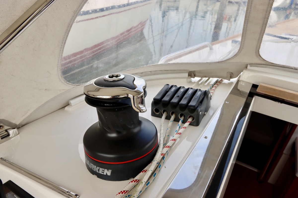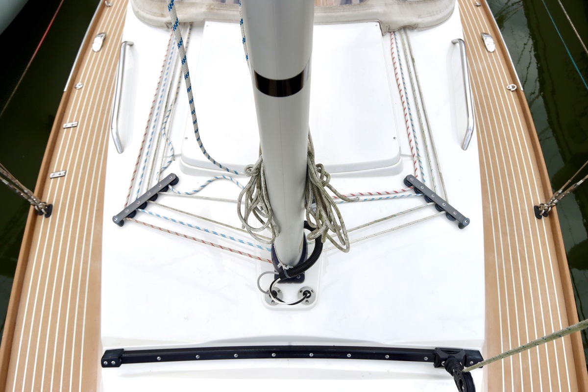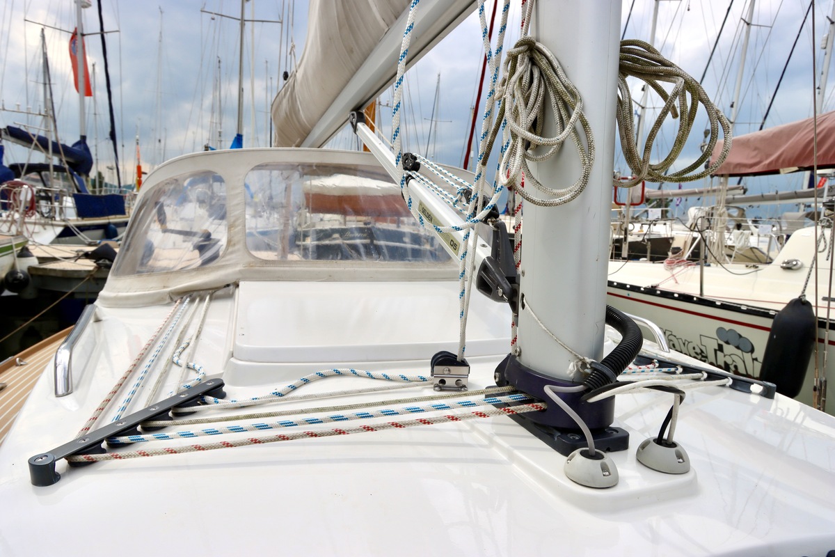 Double-reefable via a single-line reefing system from the cockpit. Mainsail in a lazybag and supported by a Selden Rodkicker.