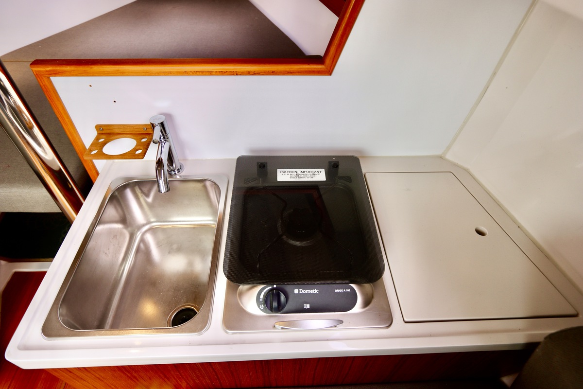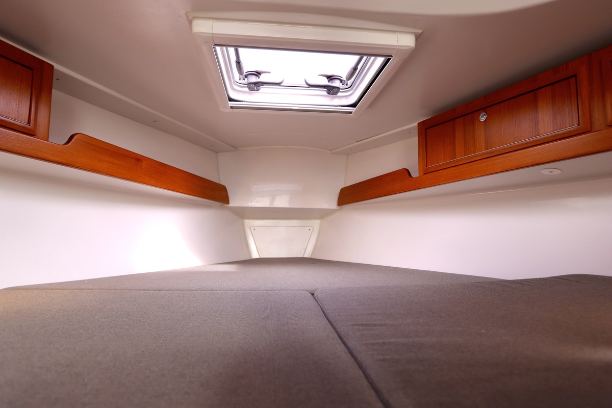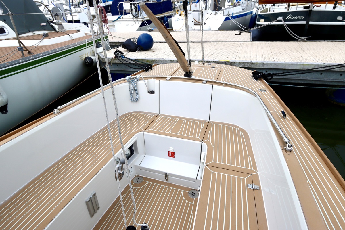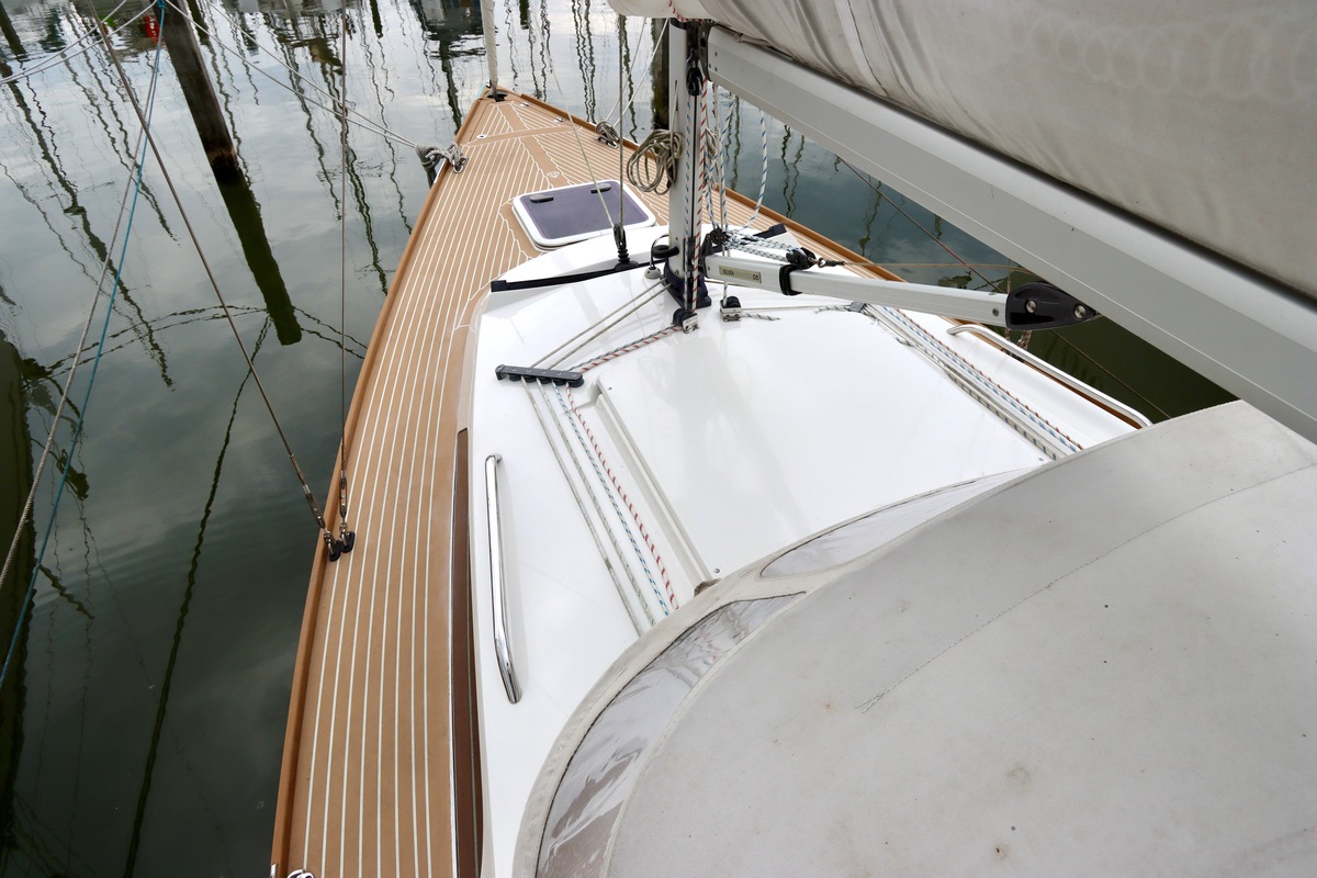 Double-reefable via a single-line reefing system from the cockpit. Mainsail in a lazybag and supported by a Selden Rodkicker.