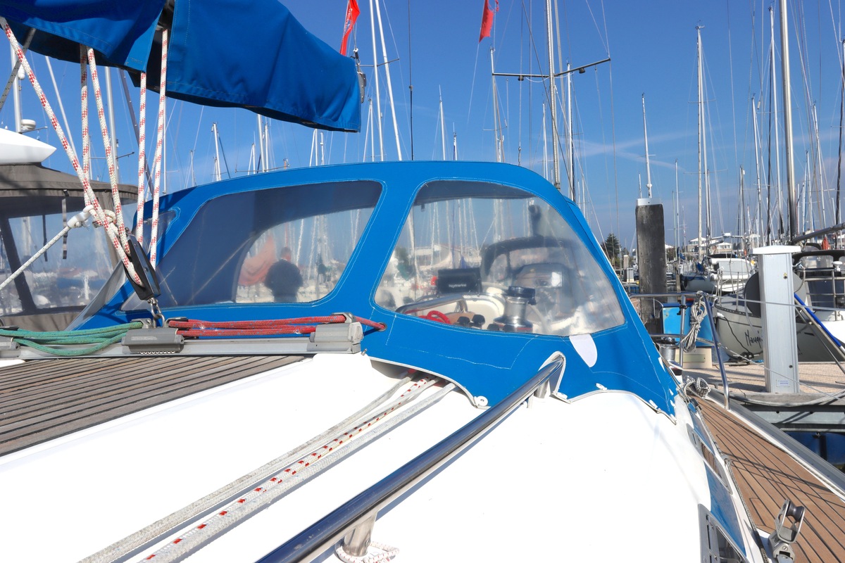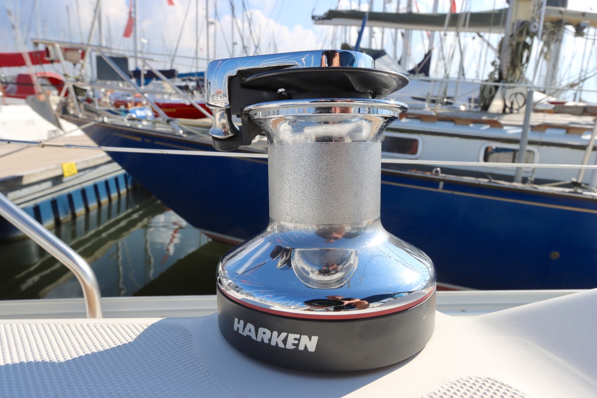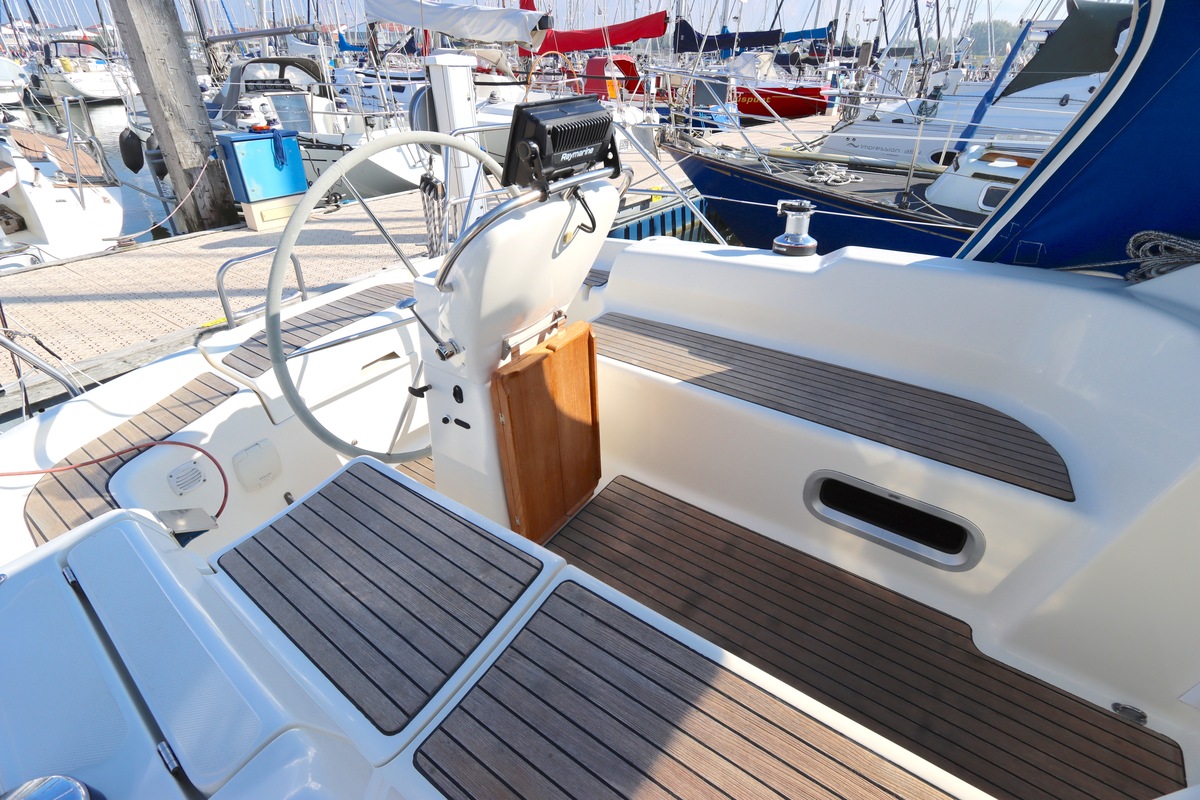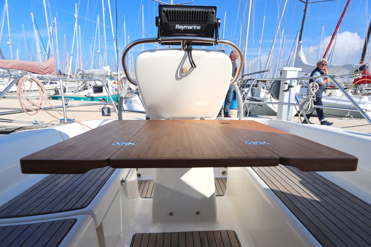 The boat is fully equipped with a Raymarine chartplotter (Axiom 9, 2018), an autopilot, quality Elvström sails, and recently replaced batteries (2023). Everything is ready to go.