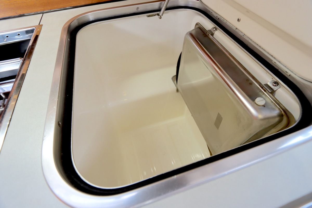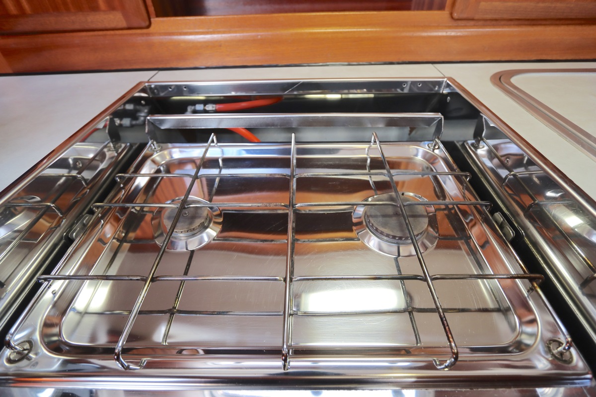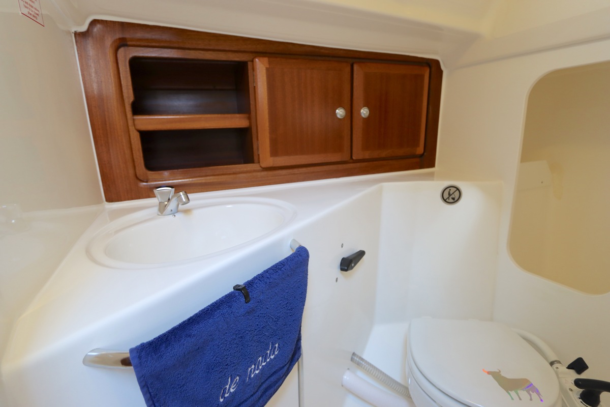 Inside, you'll find a spacious and cozy saloon with leather upholstery and woodwork that remains in pristine condition. There are two cabins and additional berths in the saloon, accommodating a total of 4 to 6 people. Amenities such as heating (Eberspächer), a Pioneer radio/CD player, and a neat galley make longer stays on board comfortable.