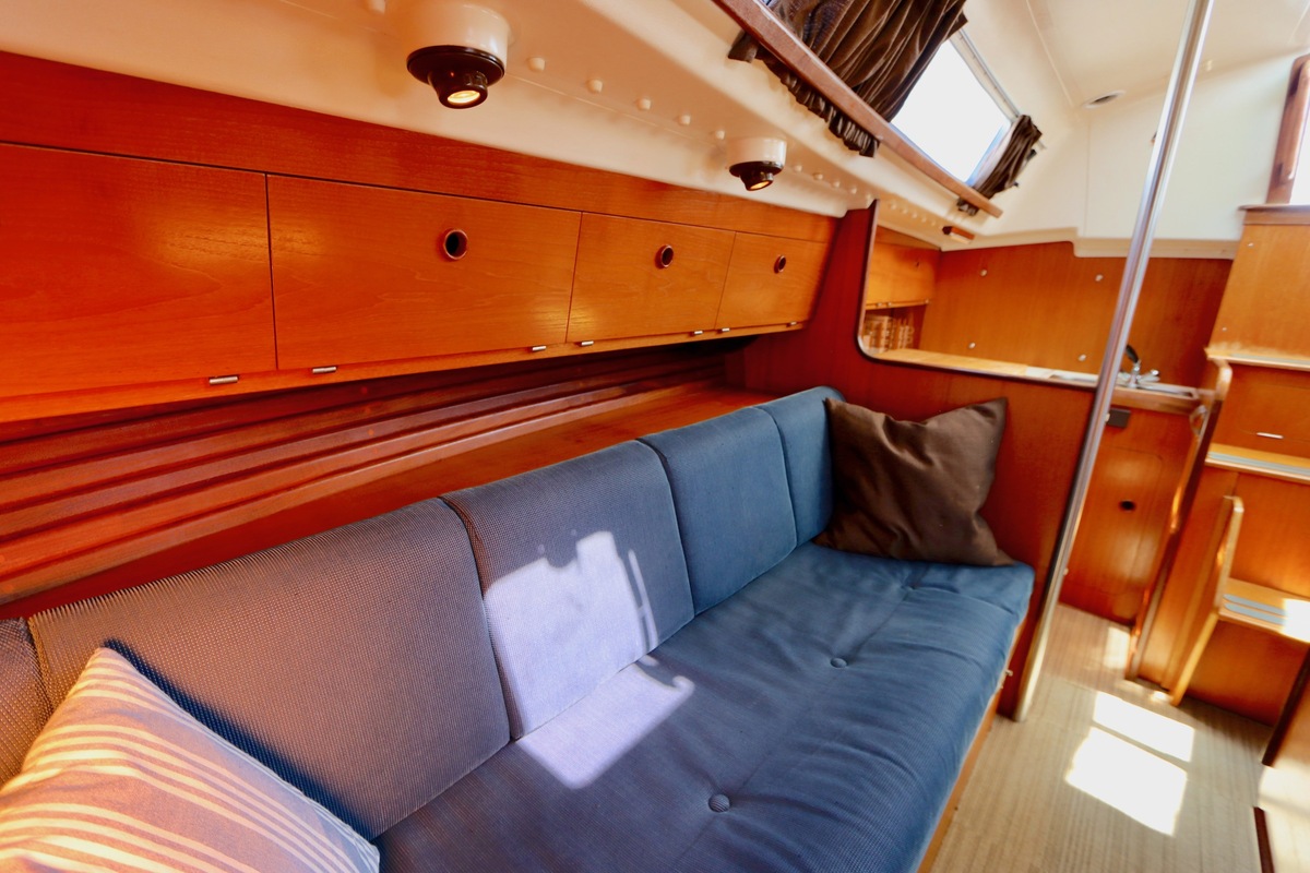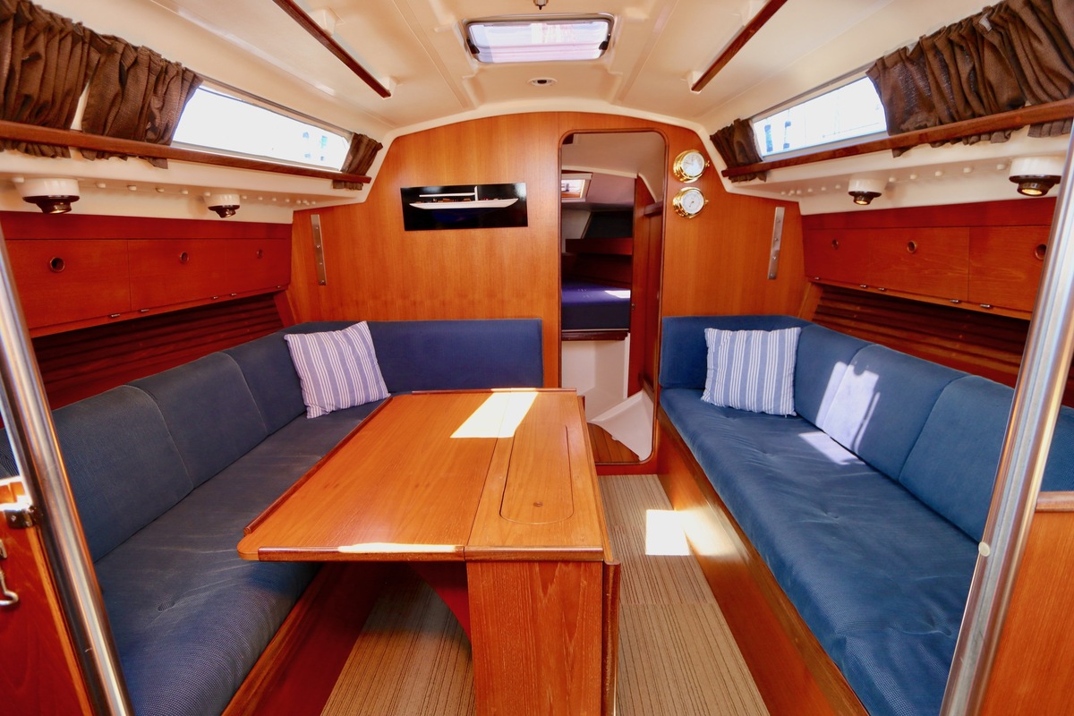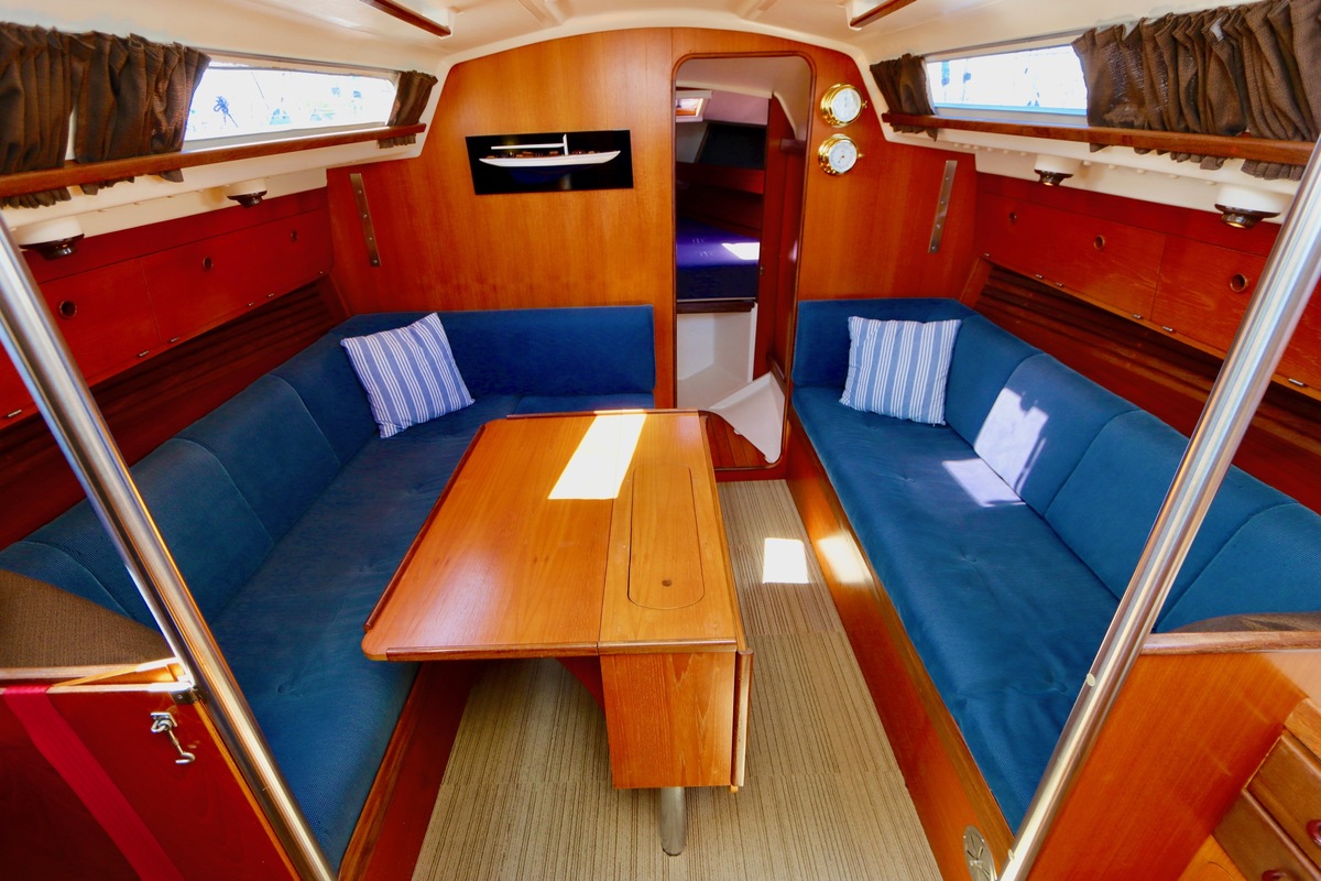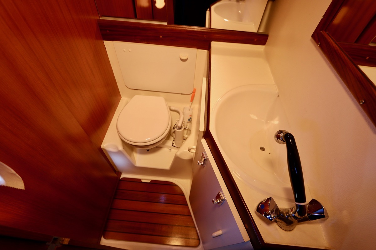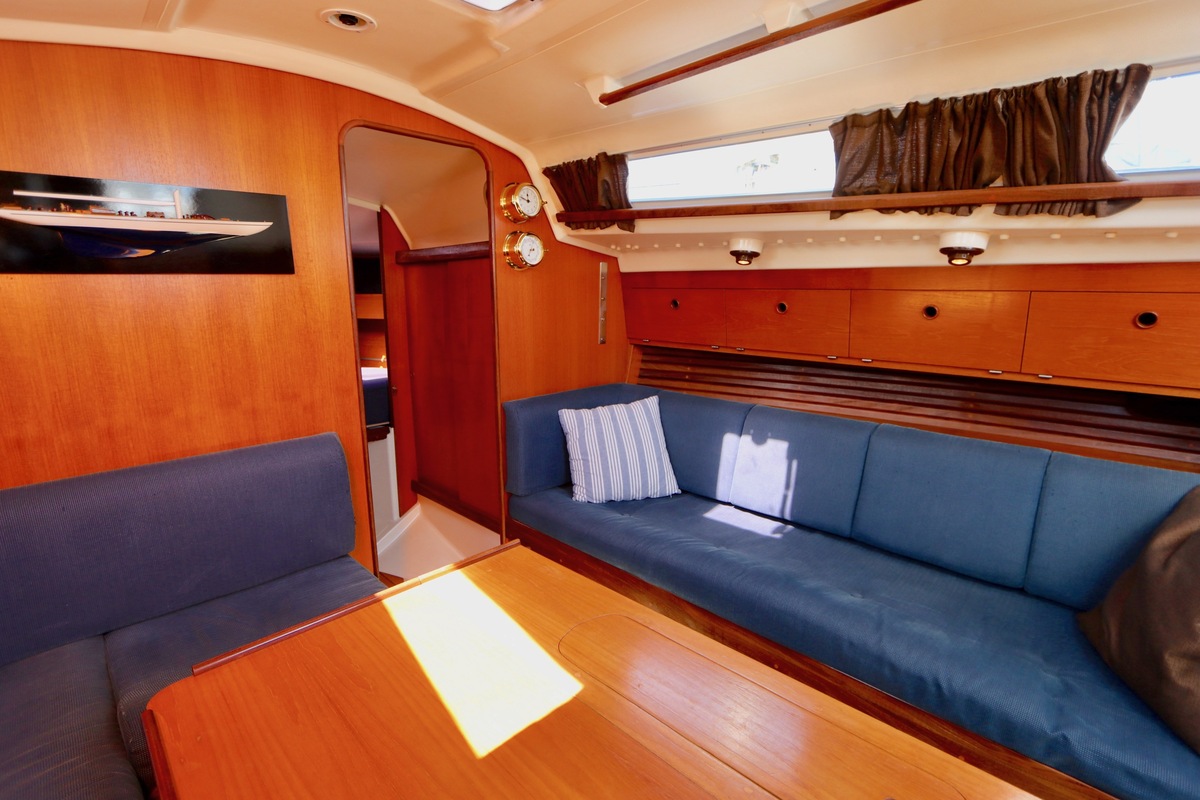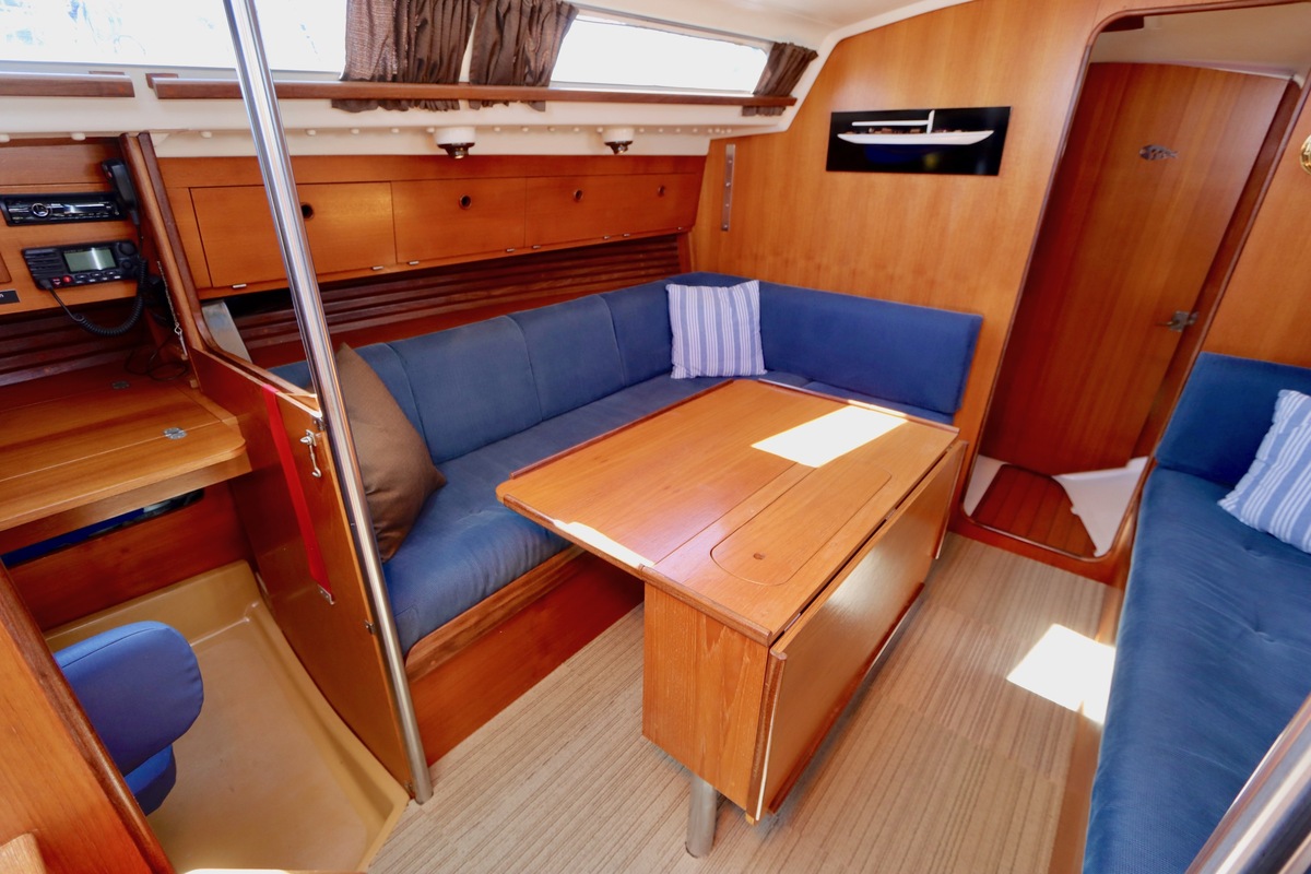 3 burner stove with oven on gas, built in 1988, no gas certificate availableCentral cabin with lots of natural light, galley and navigation corner and lockable aft cabin. To the fore cabin a forepeak with toilet and washbasin that can be closed off by means of a sliding door and a lockable sleeping compartment with Neptune mattresses (2017) and slatted bases. Both the lockable aft cabin and fore cabin have ventilation options by opening portholes and deck hatch in the fore cabin.