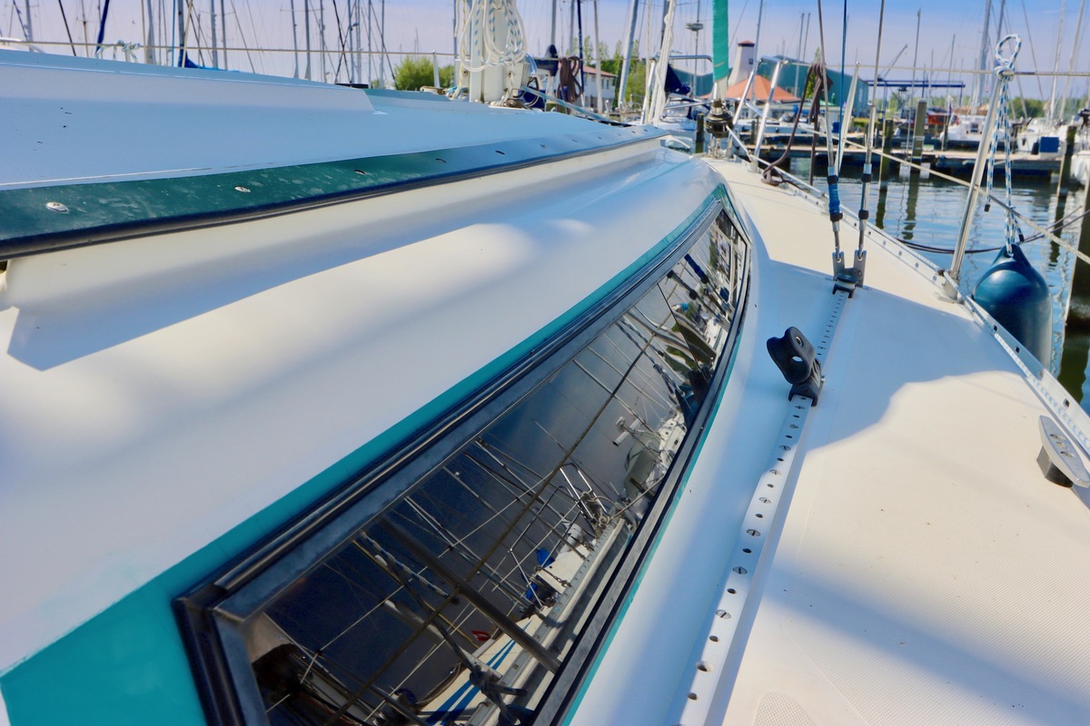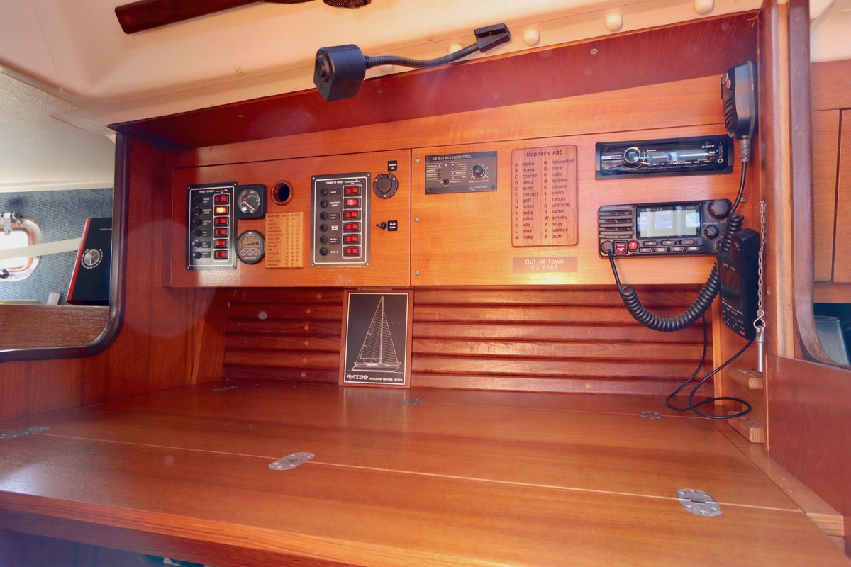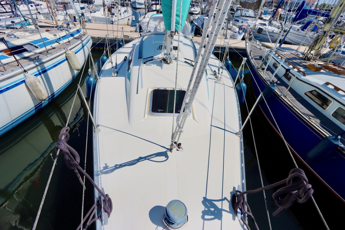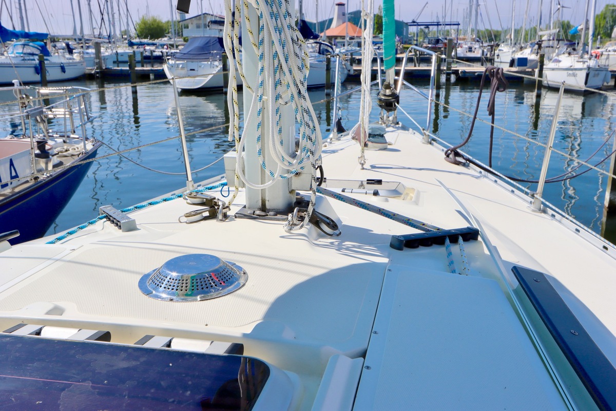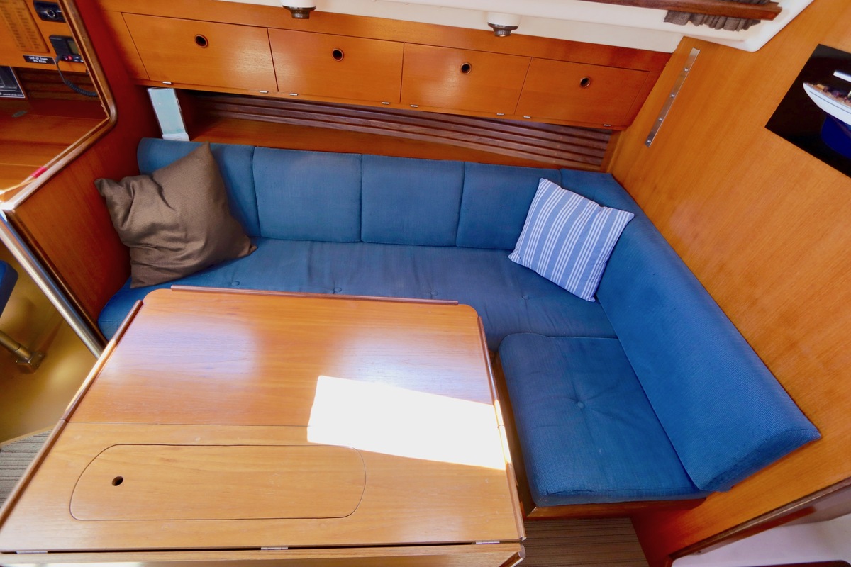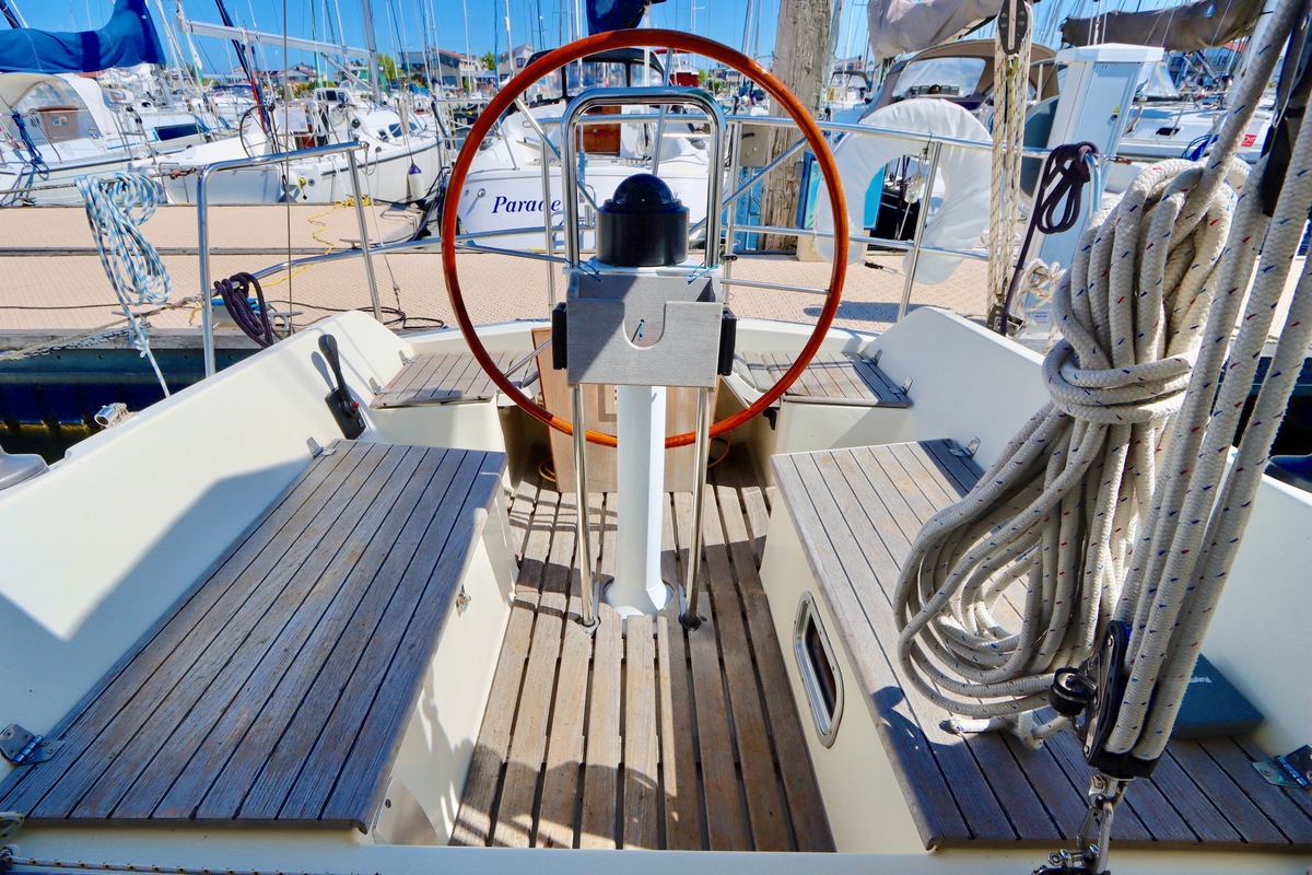 3 burner stove with oven on gas, built in 1988, no gas certificate availableCentral cabin with lots of natural light, galley and navigation corner and lockable aft cabin. To the fore cabin a forepeak with toilet and washbasin that can be closed off by means of a sliding door and a lockable sleeping compartment with Neptune mattresses (2017) and slatted bases. Both the lockable aft cabin and fore cabin have ventilation options by opening portholes and deck hatch in the fore cabin.