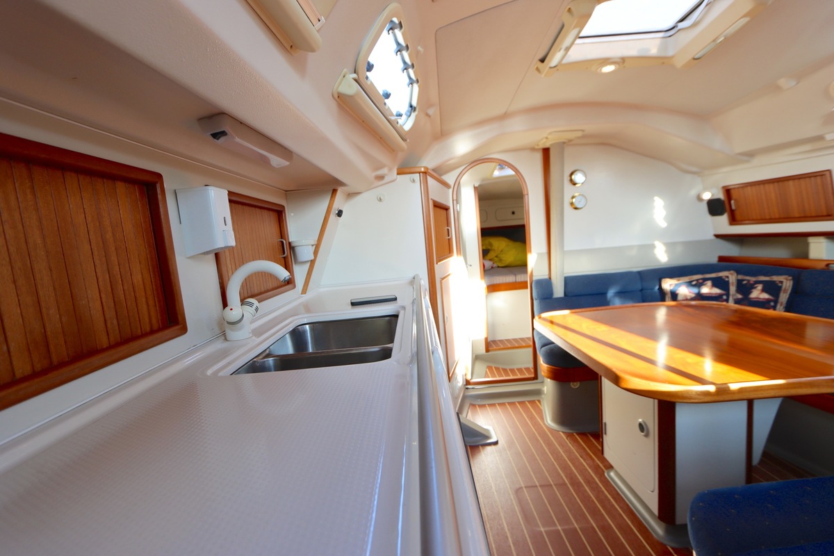 The design combines speed and stability, ideal for both racing and longer trips. The interior offers spacious berths, a well-equipped galley and a cosy saloon. The Dehler 36 CWS Top is popular because of its solid construction, ease of use and good sailing characteristics.