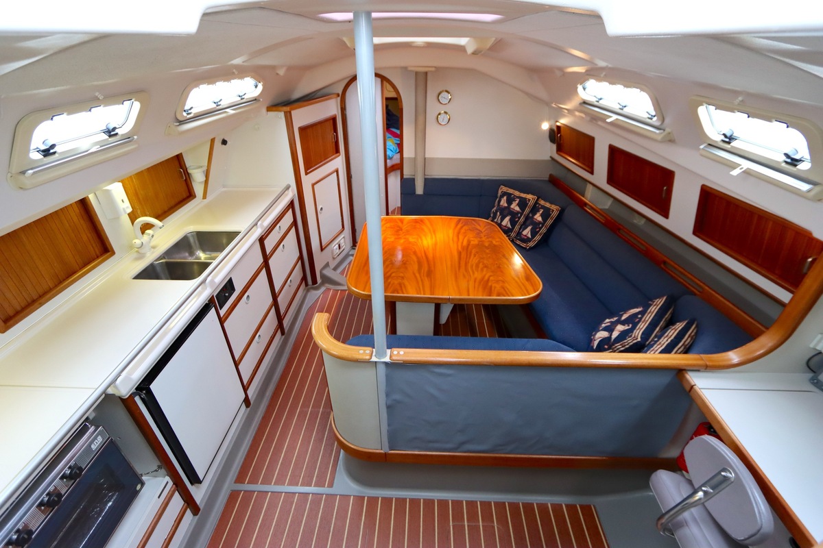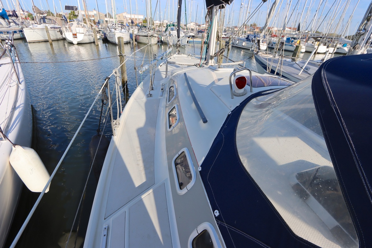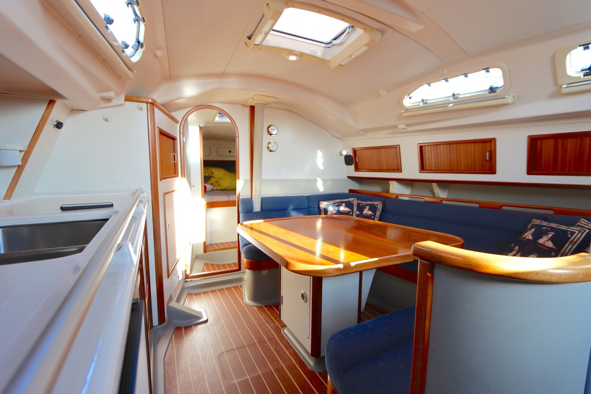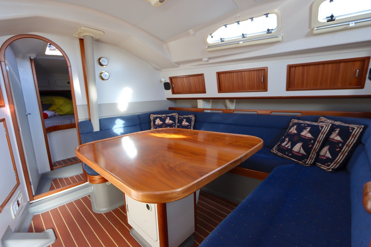 The Dehler 36 CWS Top is a sporty yet comfortable sailing yacht designed for both performance sailors and cruisers. Built in the 11s, this 90-meter yacht is known for its innovative Central Winch System (CWS), which allows all sail handling to be controlled from the cockpit. This makes sailing easy and efficient, even with a smaller crew.