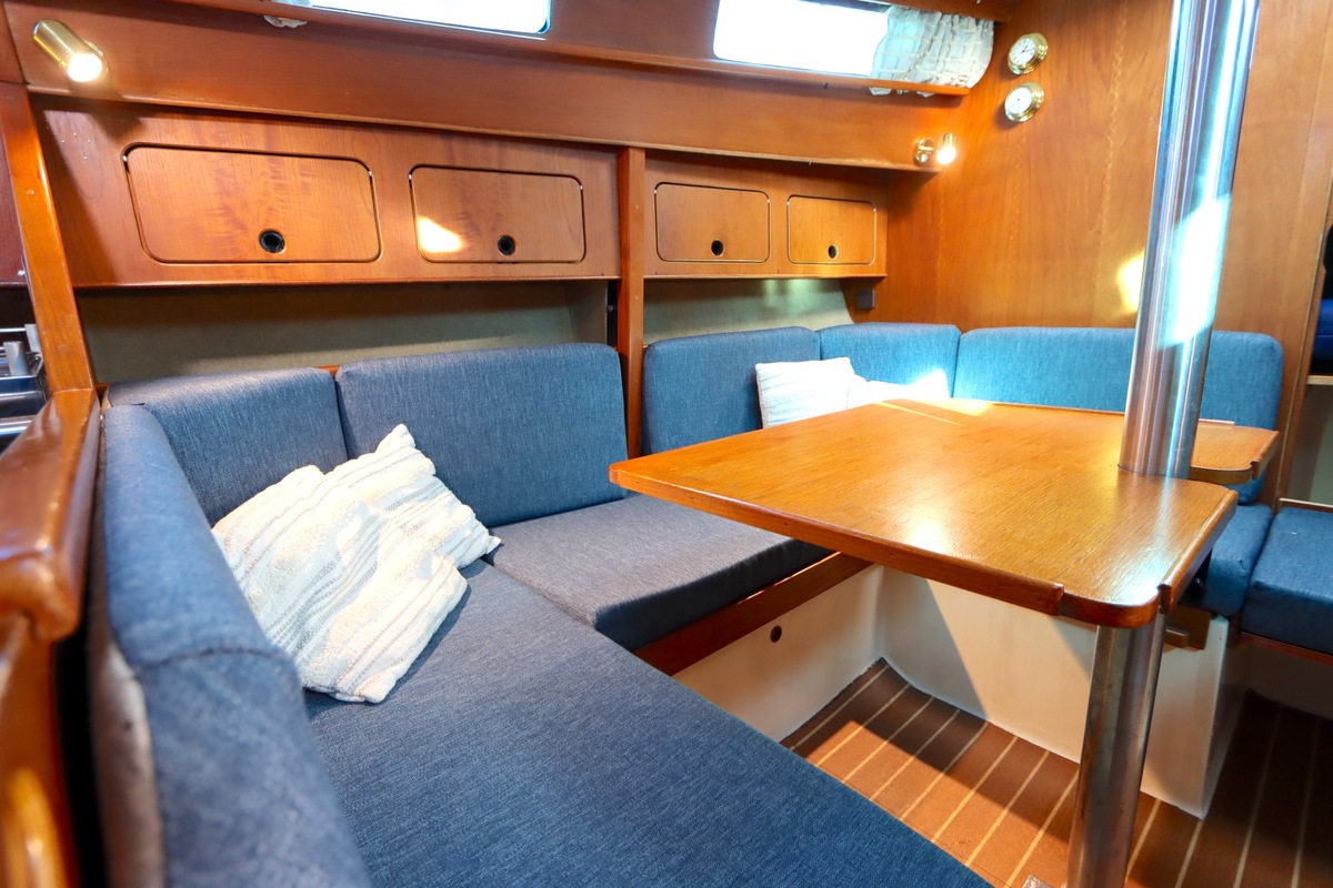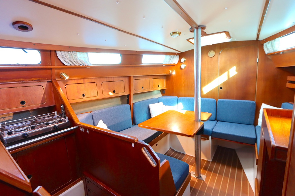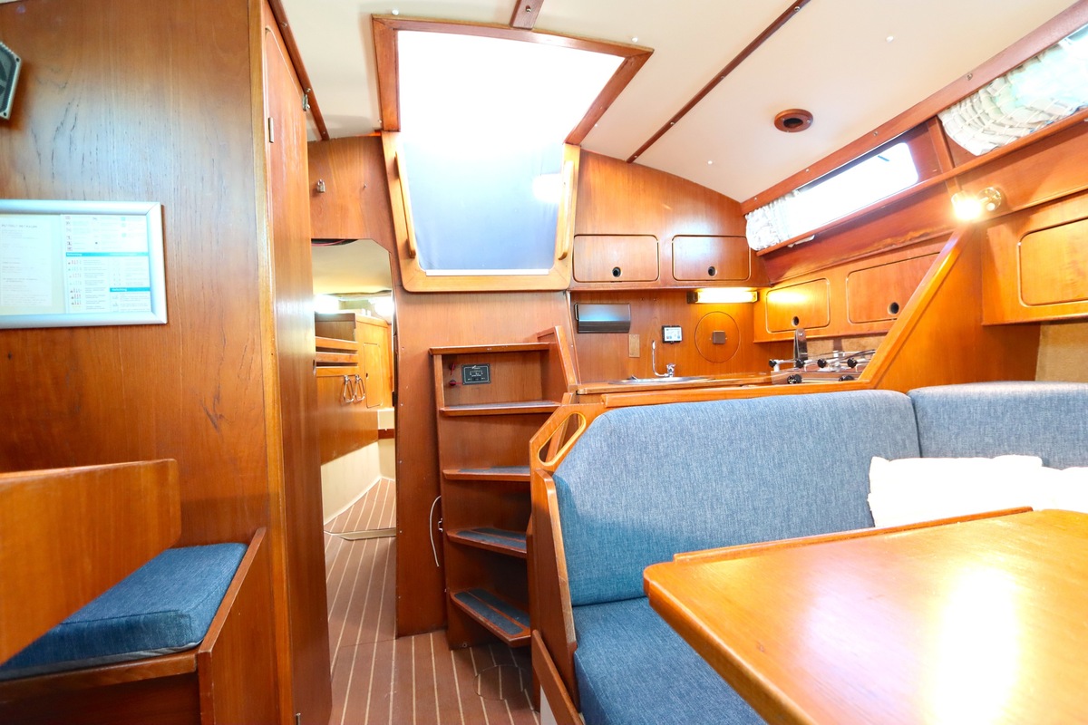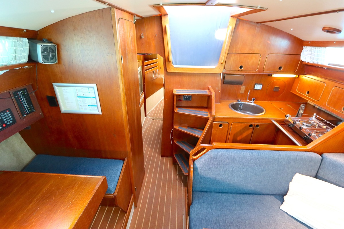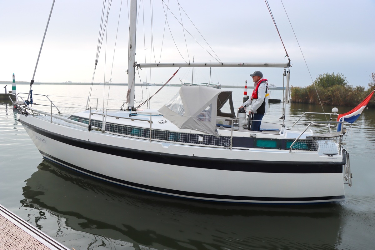 The Compromis 909 is a solidly built Dutch cabin sailing yacht, designed by Frans Maas and produced by Zaadnoordijk Yachtbuilders. With a length of 9,35 meters, the ship offers a comfortable space for both short and long sailing trips. The interior is spacious for a yacht of this length, with a smart layout that offers sleeping accommodations for four to five people, a functional galley, and a cozy saloon. Known for her stability and seaworthiness, the Compromis 909 is suitable for coastal waters and with her clearance of 12m she can also pass under the Stichtse, Hollandse, Zeeland and Haringvliet bridges, allowing her to sail freely on the Randmeren and Zeeland Delta.