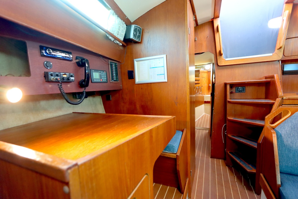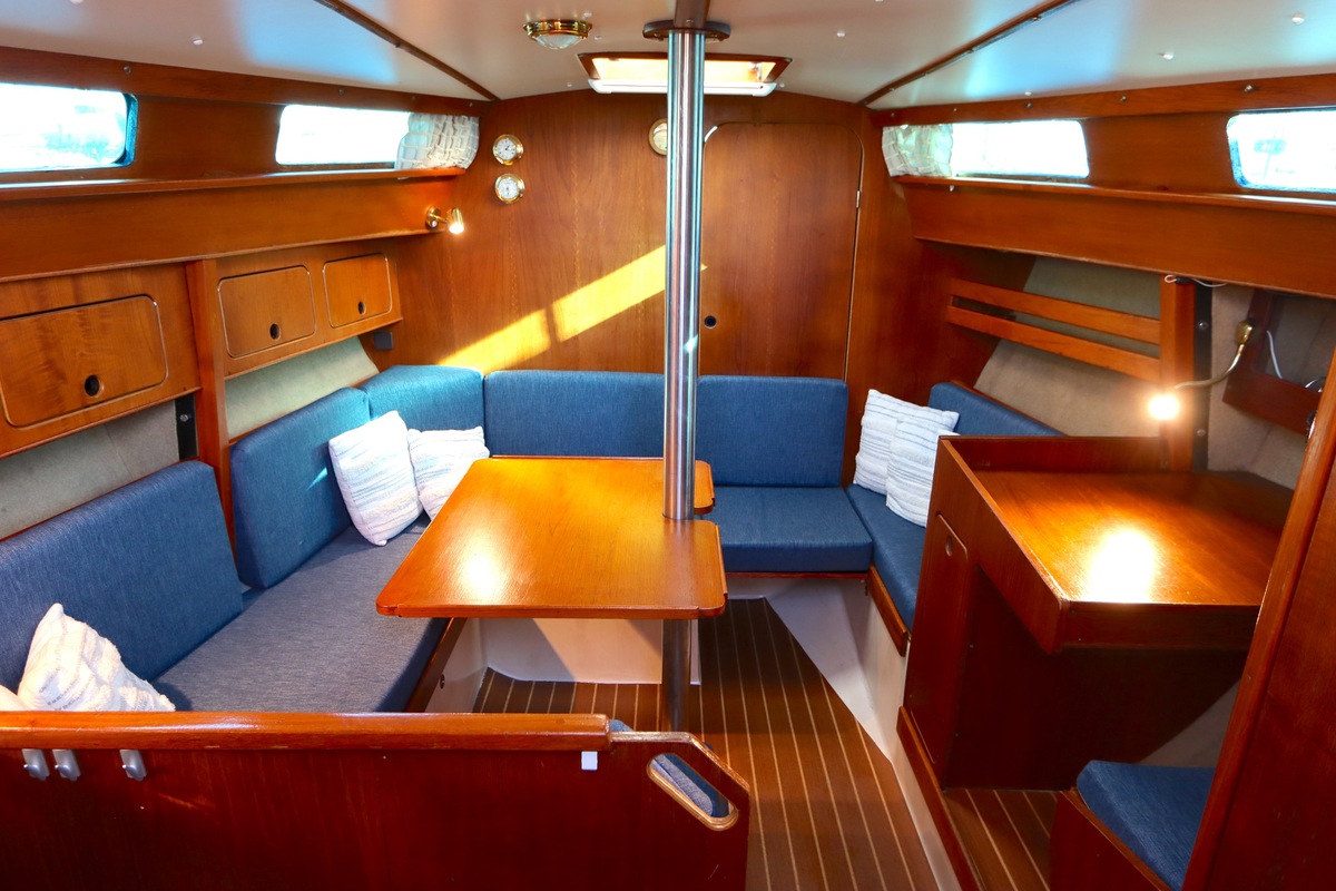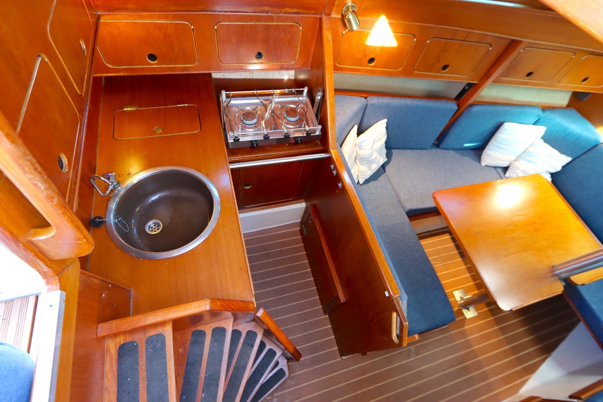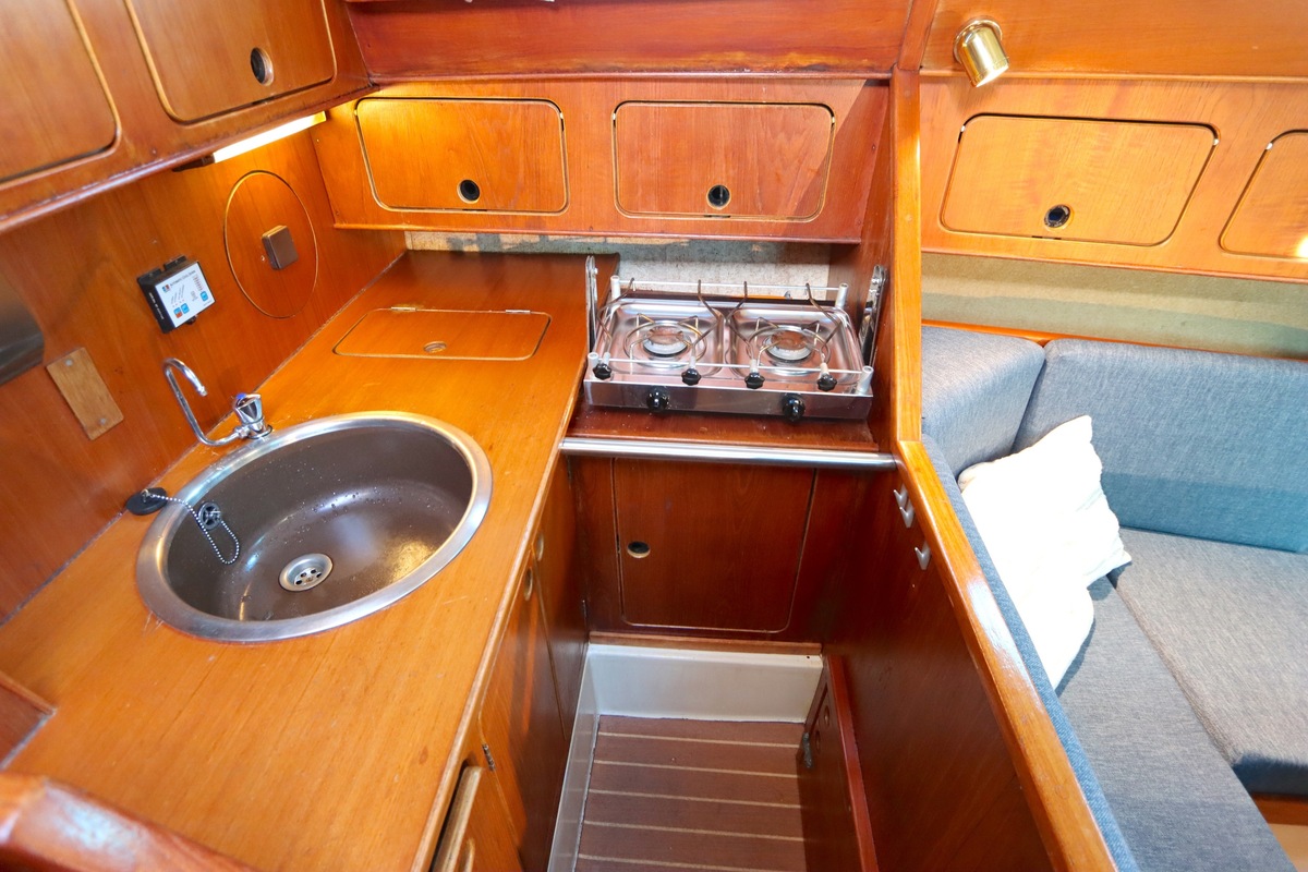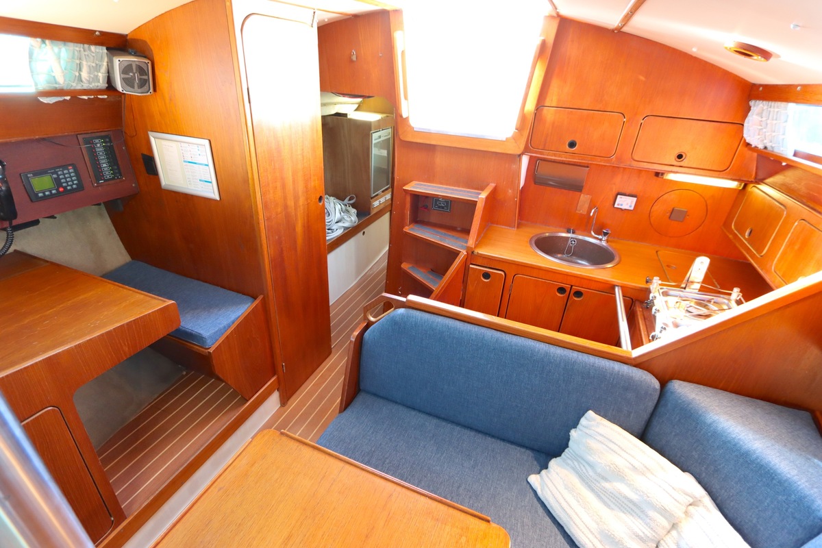 The Compromis 909 is a solidly built Dutch cabin sailing yacht, designed by Frans Maas and produced by Zaadnoordijk Yachtbuilders. With a length of 9,35 meters, the ship offers a comfortable space for both short and long sailing trips. The interior is spacious for a yacht of this length, with a smart layout that offers sleeping accommodations for four to five people, a functional galley, and a cozy saloon. Known for her stability and seaworthiness, the Compromis 909 is suitable for coastal waters and with her clearance of 12m she can also pass under the Stichtse, Hollandse, Zeeland and Haringvliet bridges, allowing her to sail freely on the Randmeren and Zeeland Delta.