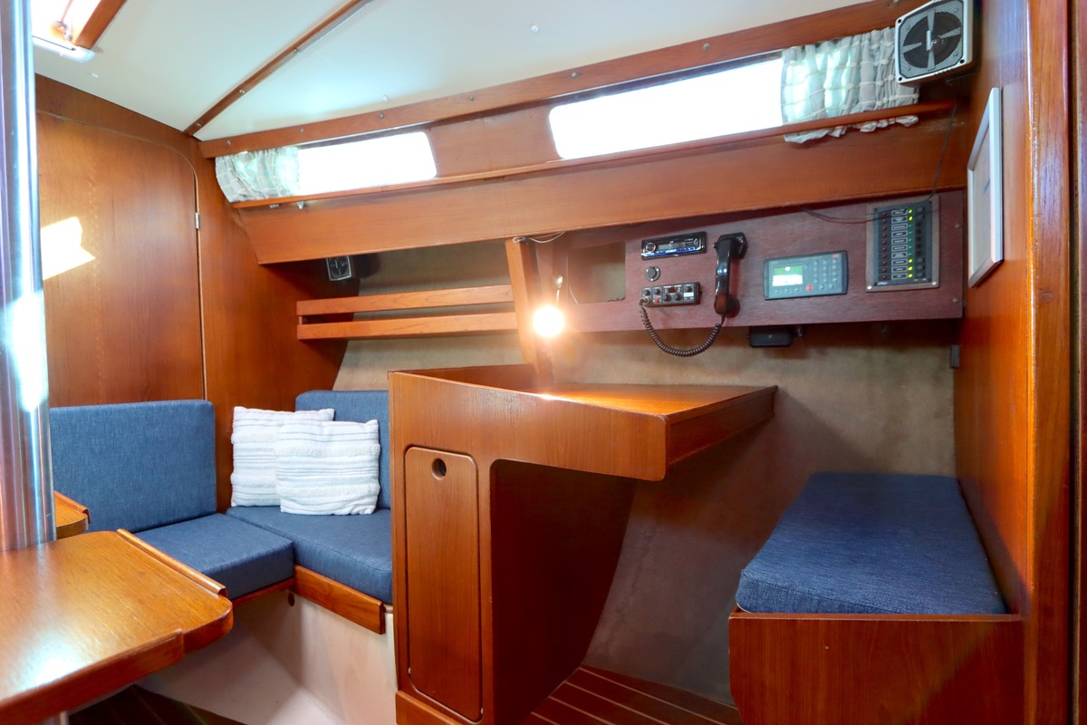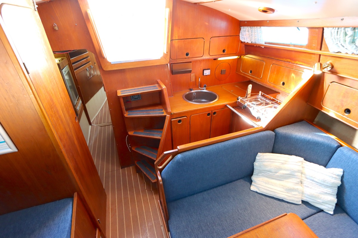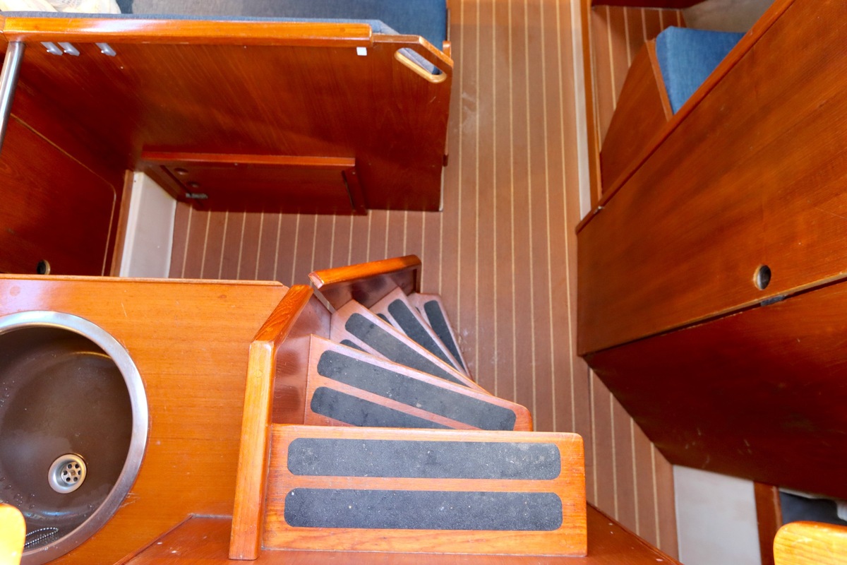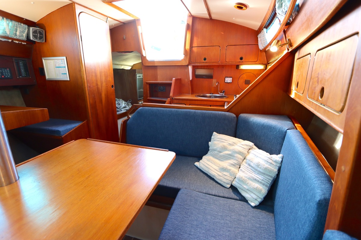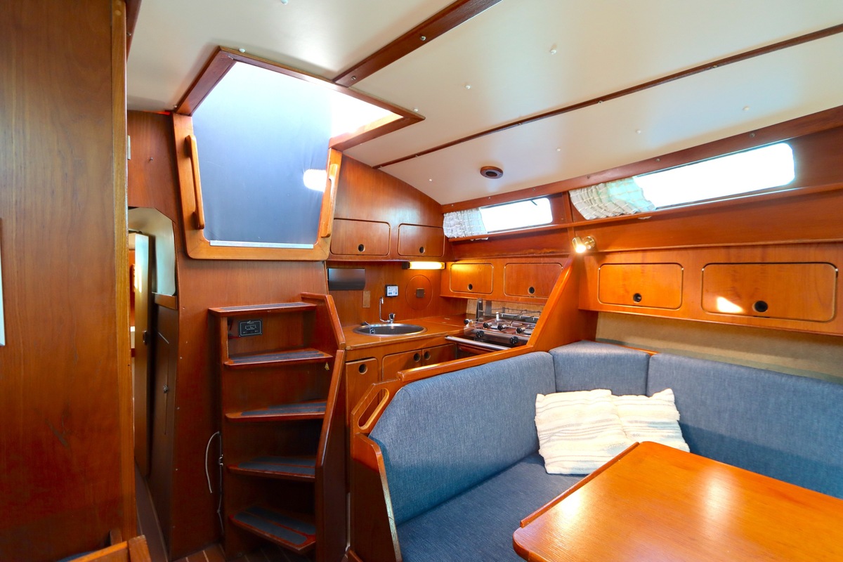 The Compromis 909 is a solidly built Dutch cabin sailing yacht, designed by Frans Maas and produced by Zaadnoordijk Yachtbuilders. With a length of 9,35 meters, the ship offers a comfortable space for both short and long sailing trips. The interior is spacious for a yacht of this length, with a smart layout that offers sleeping accommodations for four to five people, a functional galley, and a cozy saloon. Known for her stability and seaworthiness, the Compromis 909 is suitable for coastal waters and with her clearance of 12m she can also pass under the Stichtse, Hollandse, Zeeland and Haringvliet bridges, allowing her to sail freely on the Randmeren and Zeeland Delta.