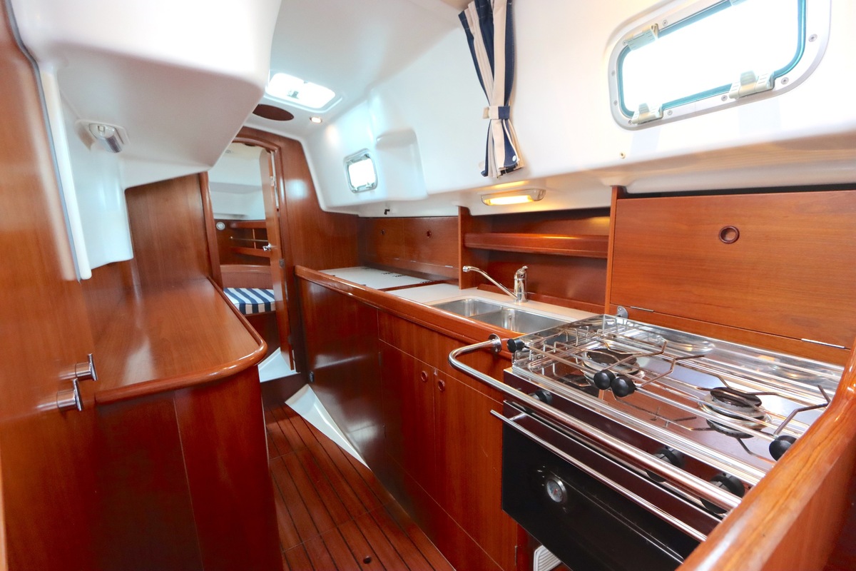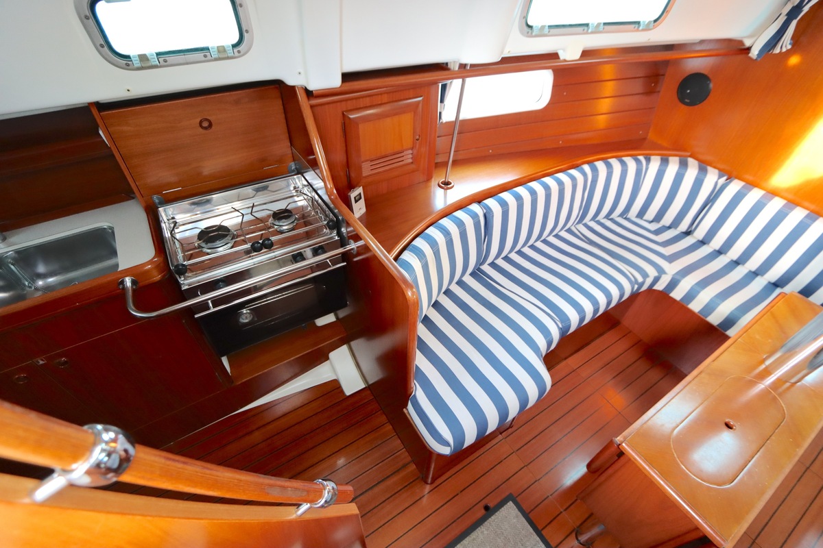 The interior is light and spacious, with a cosy saloon, a well-equipped galley and a luxurious owner's cabin aft with a freestanding double bed. The sailing characteristics are ideal for both long trips and coastal sailing.