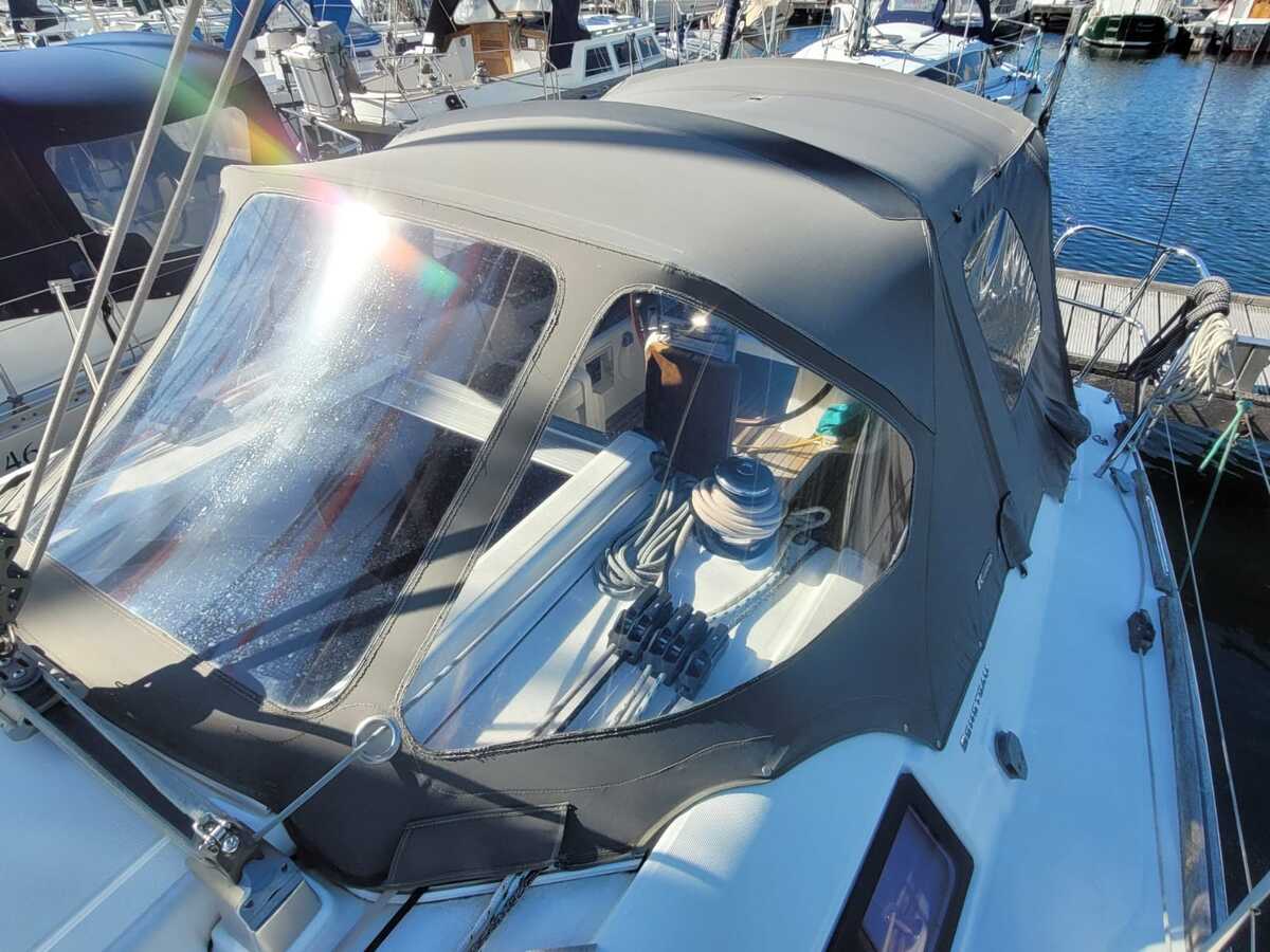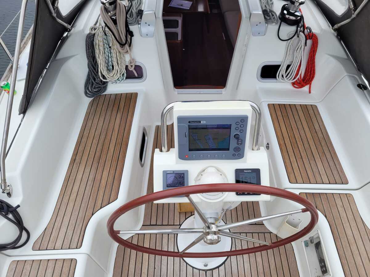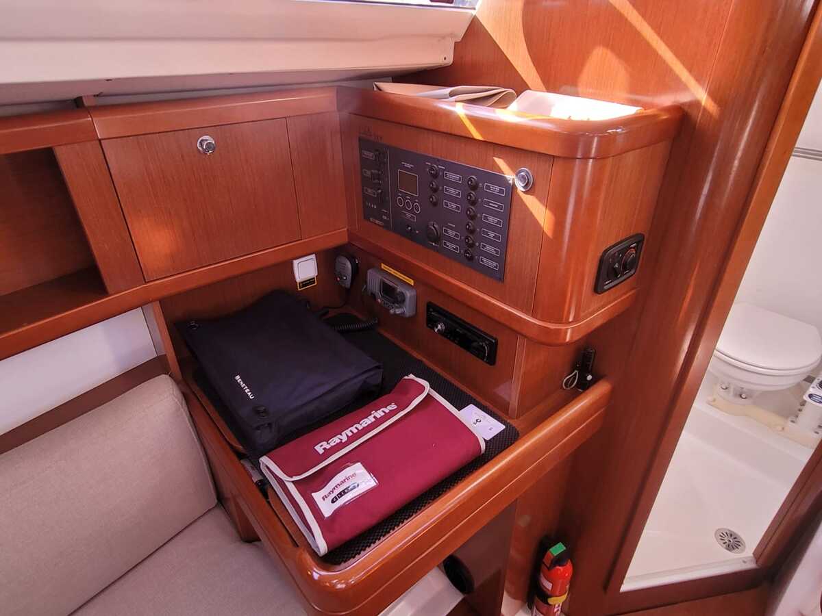 Under sail, the Oceanis 31 is lively and on course, but also delivers reliable performance under engine. On board is a Yanmar 3YM20 inboard diesel engine With 21 hp, indirectly cooled, and a propeller shaft drive. The engine has been serviced annually, with the last major overhaul performed by a specialist before the 2024 sailing season.