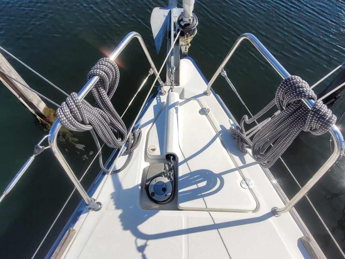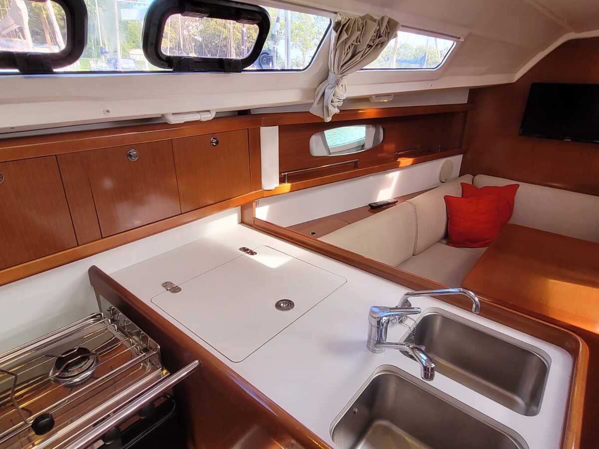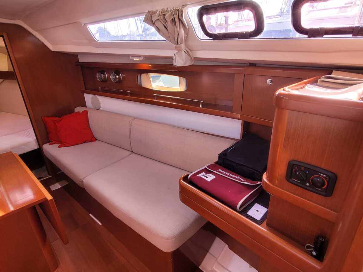 Under sail, the Oceanis 31 is lively and on course, but also delivers reliable performance under engine. On board is a Yanmar 3YM20 inboard diesel engine With 21 hp, indirectly cooled, and a propeller shaft drive. The engine has been serviced annually, with the last major overhaul performed by a specialist before the 2024 sailing season.